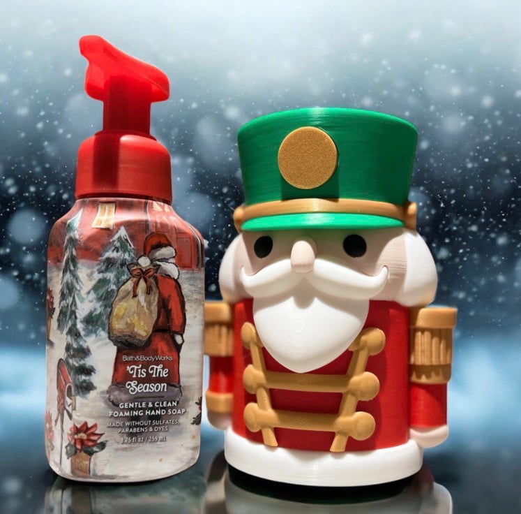 Get your custom made 3d printed soap holder that pairs perfectly with the soaps from bath and body works. Choose between Gnome, Nut cracker, snowman and rudolf.
