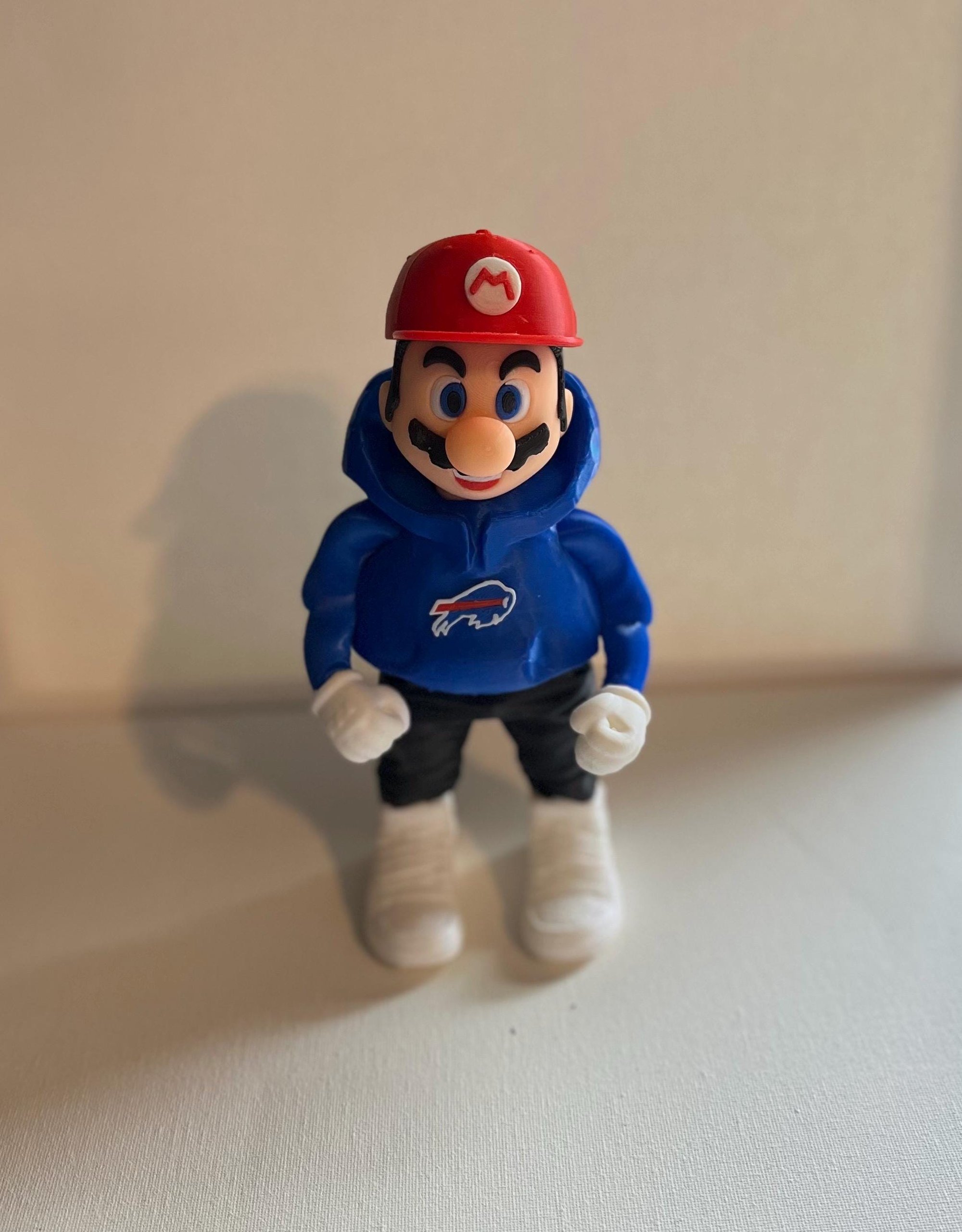 Standing before you is a 8 inch tall, 3 inch wide Super Mario 3d printed figurine that is sporting your favorite football team, the BUFFALO BILLS!