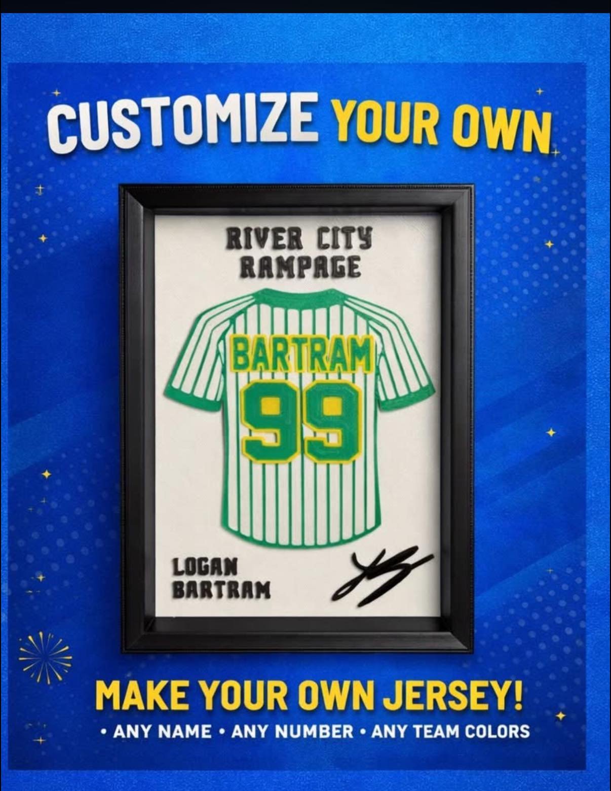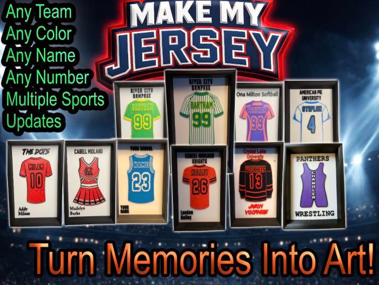 Get your custom 4 x 6 jersey shadowbox. Great for that special baseball or football player! Remember that special season/year with your team name and colors!