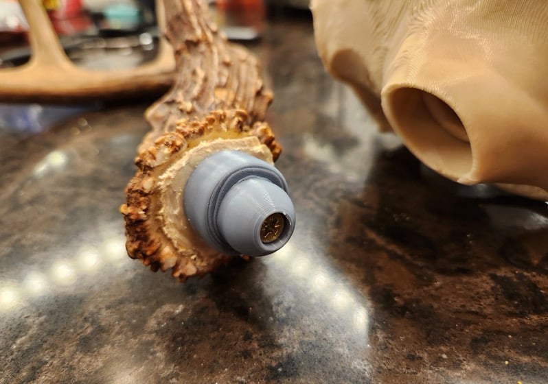 What you are ordering is a 3D Printed skull replica to put your own antlers on. Some assembly is required. They come unpainted, in white. Two wood screws, skull, and 2 knobs come with the product.