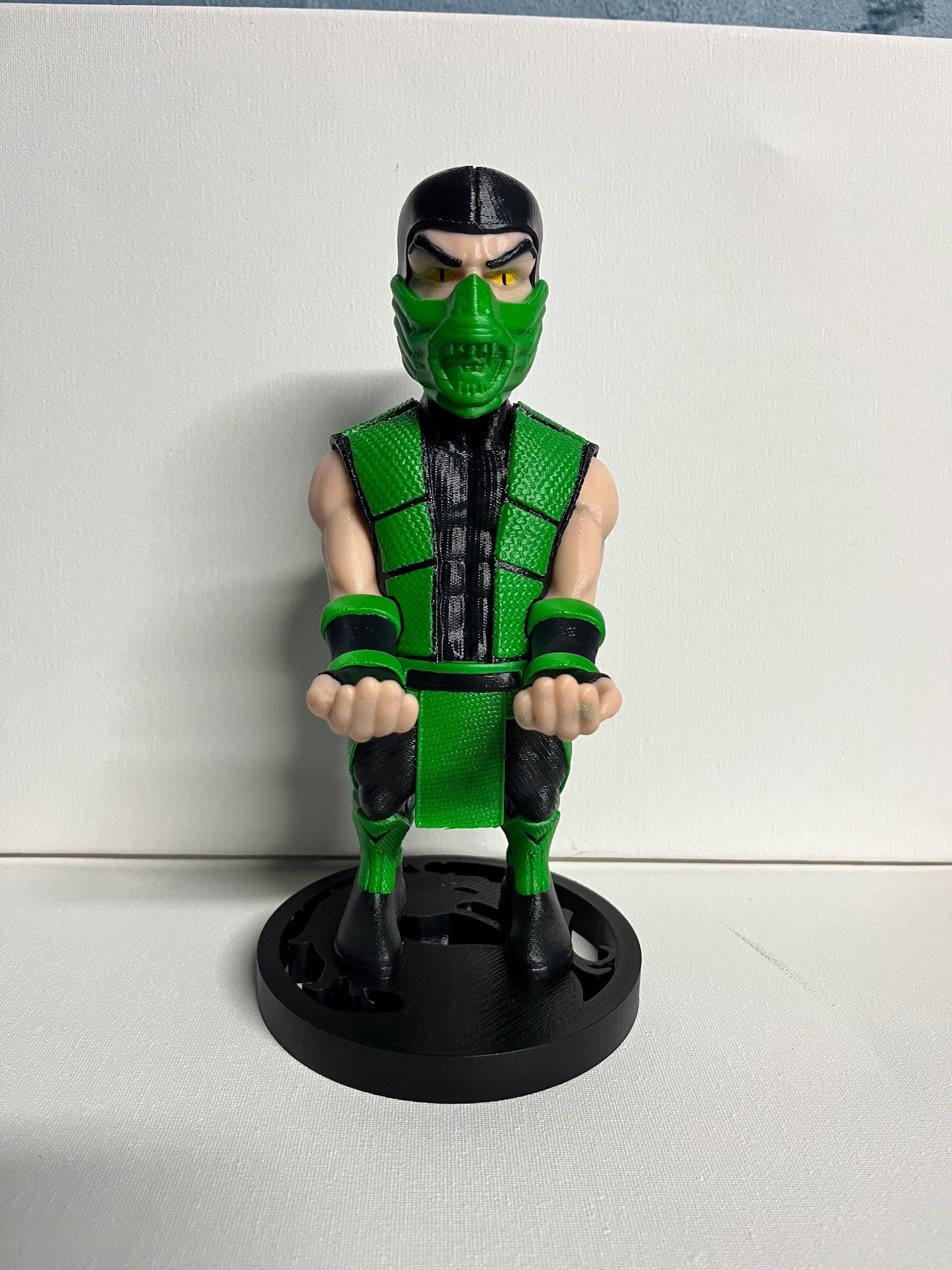 This is a 3d printed controller/phone holder that is printed in the color scheme you want using AMS style. It is not painted but is the plastic color itself so it can’t rub off. You choose what color you want the Ninjas cloths to be to represent subzero (blue) scorpion (yellow) reptile (green) etc. After it’s made I give it a clear coat.